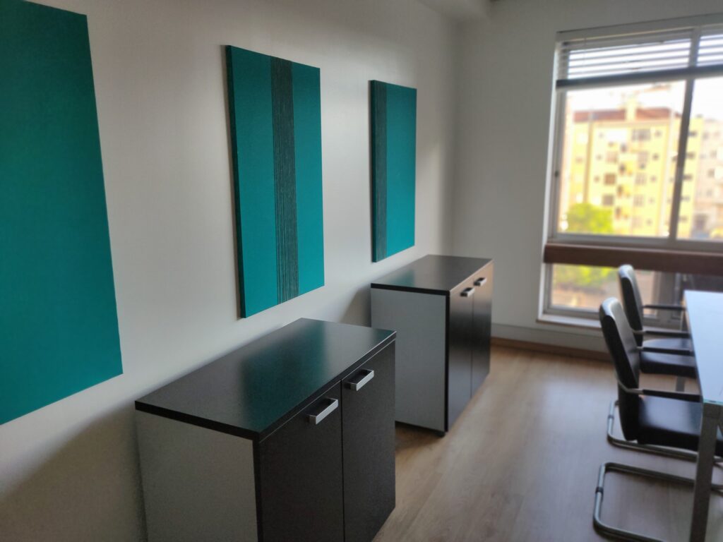 Nossos espaços de trabalho foram cuidadosamente projetados, com mobiliário contemporâneo, iluminação natural  adequada e uma atmosfera agradável.